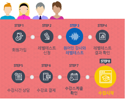 | STEP 3 | 원어민 강사와 레벨테스트 |